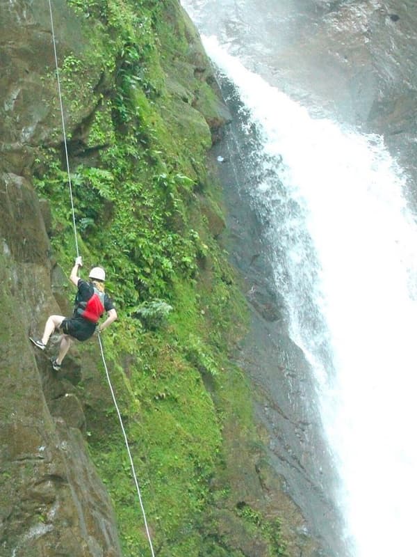 The Gravity Falls Costa Rica canyoning adventure entails a heart-pounding 140ft rappel down a cascading waterfall into a serene, crystalline pool. As if that’s not enough, brace yourself for five cliff-diving waterfall jumps, ranging from a daring five feet to a jaw-dropping 25 feet! You’ll also get to navigate a canyoning swim through a narrow passage, engage in river tracing, and embark on other thrilling climbing adventures.